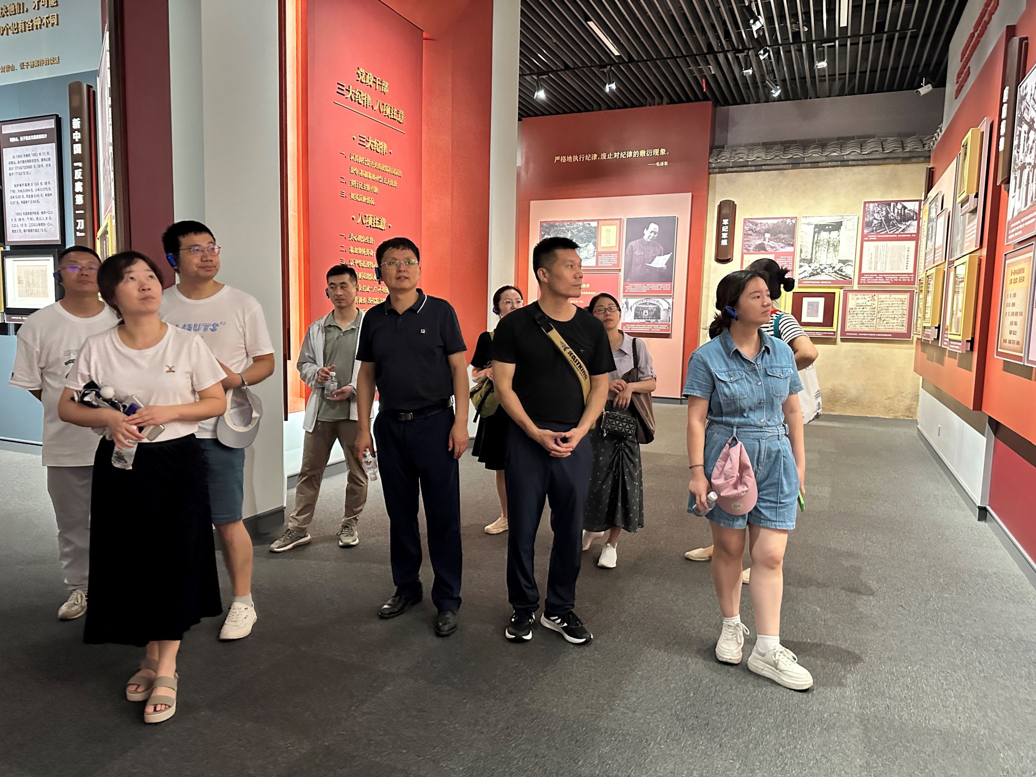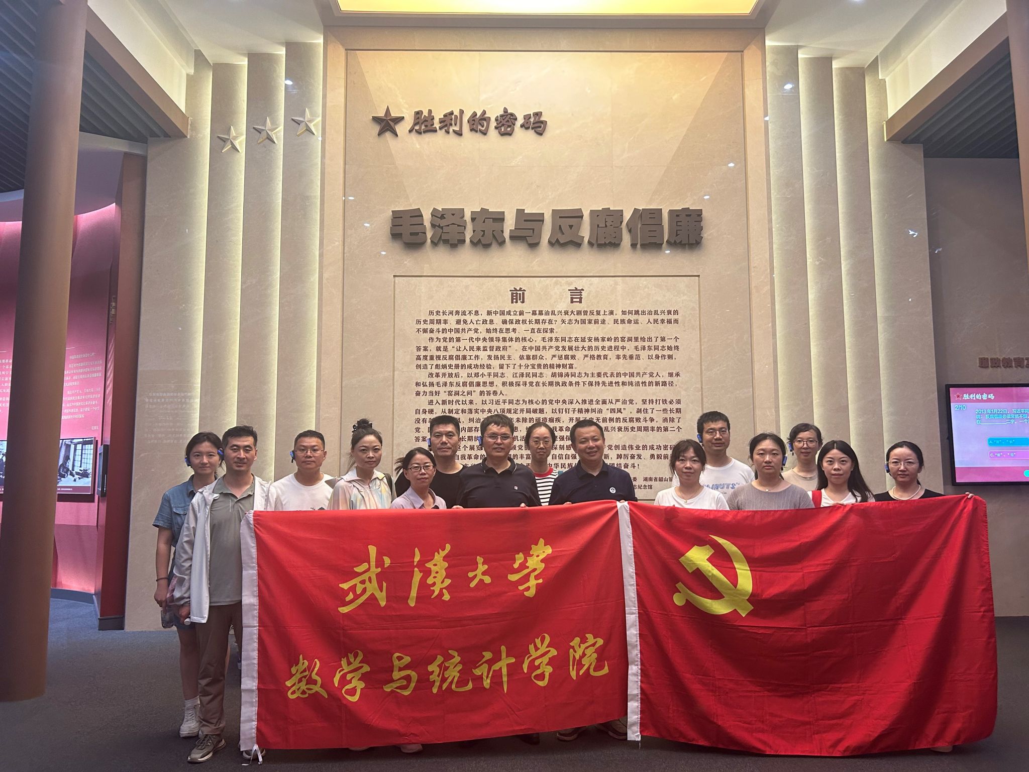 为深入推进党纪学习教育走深走实,中心组成员在“毛泽东与反腐倡廉”专题展厅中开展了党风廉政教育,感悟一代伟人的心路历程,学习毛泽东同志为核心的第一代中央领导集体发扬民主、依靠群众,严惩腐败、严格教育,率先垂范、以身作则,创造彪炳史册的成功经验,进一步引导教工党员强化纪律意识、加强自我约束、提高免疫能力,增强政治定力、纪律定力、道德定力、抵腐定力,始终做到忠诚干净担当,在加快中国特色世界一流大学建设的新征程上勇担使命、开拓新局,答好“推进中国式现代化,武大何为”的时代命题�