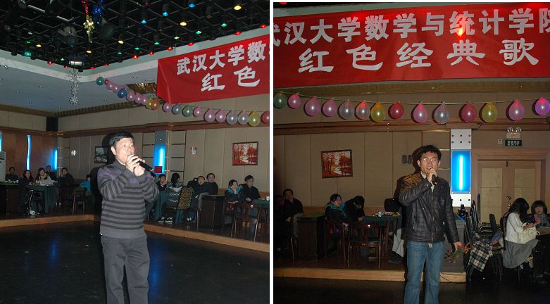 在校明珠园歌舞厅成功举行学院创先争优特色活动“红色经典歌曲大赛”,活动由院党委主办,院工会承办,湛少锋老师、刘伟安老师、胡宝清老师、胡亦钧老师、徐振华老师应邀担任评委,李好老师、赵雪荣同学、吴舒怡同学共同担任主持人。比赛在轻松欢快的气氛中进行,最后,陈化院长宣读了比赛结果:由尹常倬老师、方和平老师、黄安云老师表演的京剧《智斗》荣获特等奖;洪志明老师演唱的《母亲》、2010级硕士研究生宋平凡、杨冰演唱的《十送红军》荣获一等奖;2008、2009级本科生王秀慧、陶颖、赵烁演唱的《半个月亮爬上来》、概率与统计数学系张正良老师演唱的《天路》、张洁洁同学演唱的《我和我的祖国》荣获二等奖;应用数学系王艳老师演唱的《祖国啊我永远热爱您》、计算数学系陈国贤老师和周进老师演唱的《军港之夜》、基础数学系小合唱《大海啊故乡》、肖玉霞老师演唱的《映山红》、2010级硕士研究钱礼演唱的《歌唱祖国》、2010级硕士研究生张媛媛、何逊眉、汪琴、贾苹苹演唱的《喀秋莎》荣获三等奖。其中,2009级本科生范仲鸣还为大家带来了一曲电子琴独奏《绿袖子》、卢晓玲老师表演了独舞《在希望的田野上》、陈化院长表演了独唱《洪湖水浪打浪》、尹常倬书记演唱了《草原上升起不落的太阳》,更为比赛带来了一次又一次高潮,最后,比赛在热烈的掌声中圆满结束。(摄影:洪志明 王忠海)