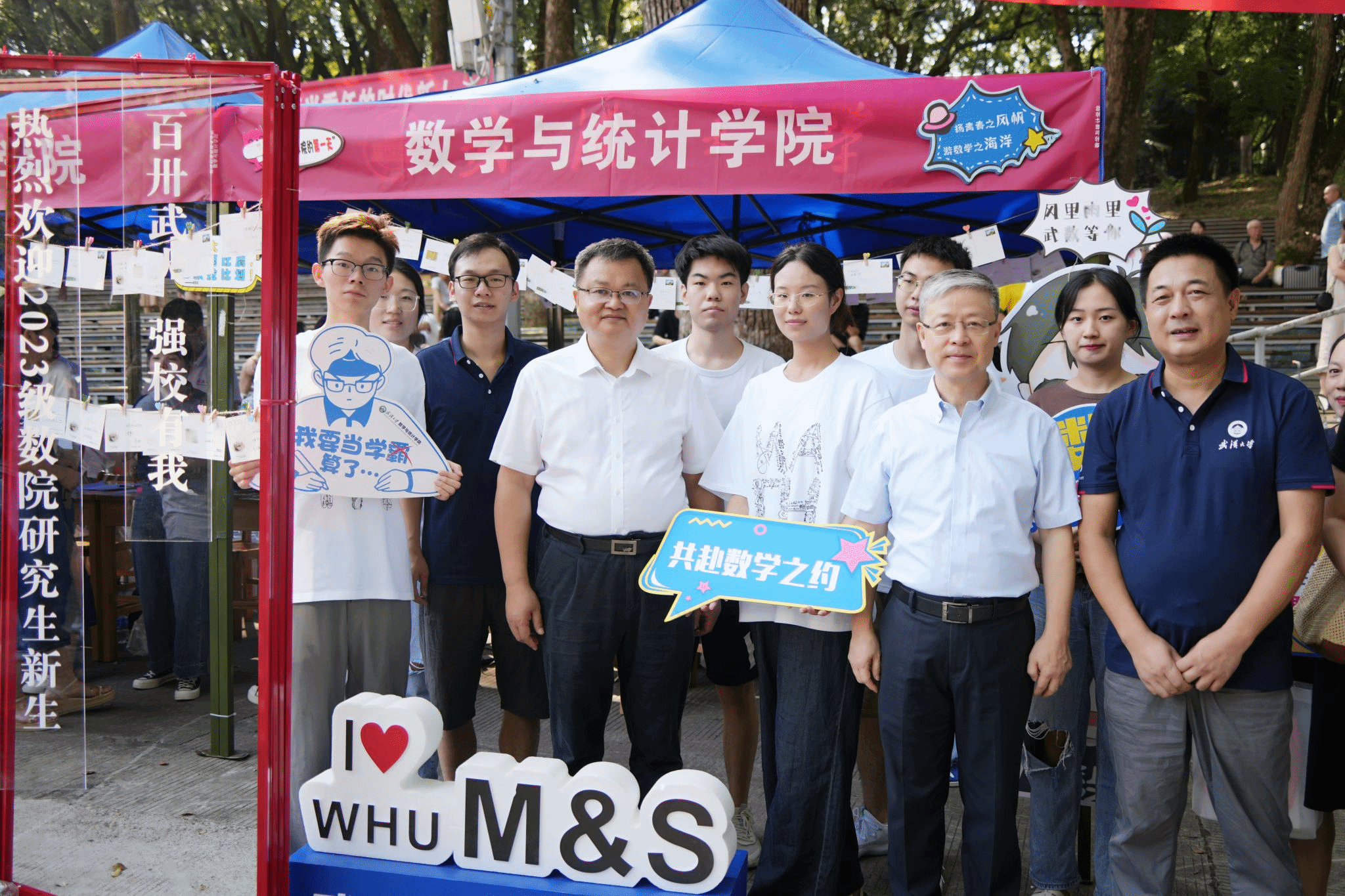 在梅园小操场开展2023级研究生新生迎新工作。46名博士研究生和108名硕士研究生欢聚珞珈山。