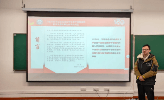 12�21日,我院计算数学专业硕士生党支部�2022级计算数学硕士班团支部开展党团共建活动。我�2023级应用数学专业硕士研究生、校青年教师团讲师余惠敏应邀做主题为“学习习近平总书记给武汉大学参加中国南北极科学考察队师生代表的重要回信精神”的宣讲,计算数学专业硕士生党支部书记王健以“学习拔群精神”为主题讲授党课�