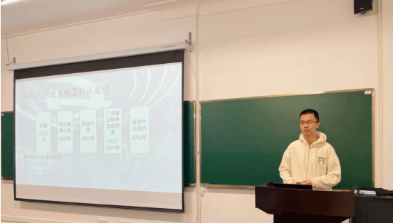王健围绕韦拔群的人生经历,结合作为“头雁训练营”研究生党员骨干代表赴广西实践研修的感悟,把同志们的思绪拉回了那段可歌可泣的历史。他从“为了群众愤不平”、“唤起群众破不平”、“组织群众铲不平”、“身后群众齐赞评”四个方面介绍了韦拔群考察中国农民群众的疾苦,点燃农民运动的烈火,创办农民运动讲习所,坚守右江革命根据地等事迹。韦拔群用自己的一生践行了入党誓词,用生命铸就了“对党忠诚、一心为民、追求真理、百折不挠、顾全大局、无私奉献”的拔群精神。我们要在学习拔群精神中进一步坚定理想信念,书写新时代中国特色社会主义武大新篇章�