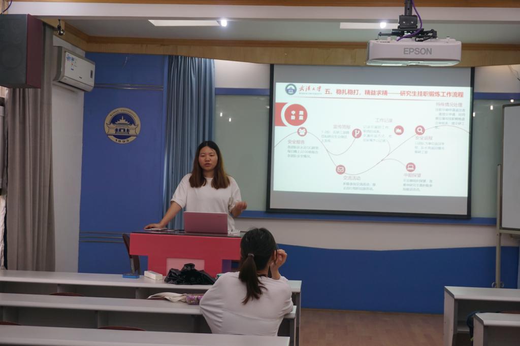 研究生创新实践协会的秦路杰主席和王硕副主席分别进行了挂职锻炼流程介绍和挂职经历分享。参会的有17、18级的研究生,会议由爱情岛