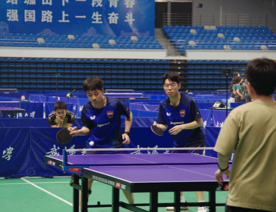 男双赛场中,周睿�/郝泽�组合作为上一届研乒赛的男双季军,本届比赛�一号种�的身份参赛。在16�8中,周睿�/郝泽铭组合以3�0连胜三局顺利晋级男双八强。在8�4的比赛中,周睿康/郝泽铭组合遭到文学院刘檬/邱啸林组合的强力阻击。前两局中,周睿�/郝泽铭组合状态不佳,每局�2分之差惜败对手,大比�0�2落后。第三局中,周睿�/郝泽铭组合积极调整,�11�9扳回一局。第四局中,对手敢打敢拼,中局我方�4�9大分差落后。在淘汰的边缘,周睿�/郝泽铭稳住心态,球球必争,连�6分率先取得局点,并以12�10逆转取胜第四局!决胜局中,对手�10�8率先取得两个赛点,周睿康/郝泽铭临危不乱,关键时刻敢于出手,再次连�4分以12�10拿下决胜局,逆风取胜!半决赛中,周睿�/郝泽铭组合稳扎稳打,3�1战胜对手,晋级决赛!决赛的对手是来自法学院的陈梓�/黎浩鑫组合,我方由于实力差距,不敌对手。最终,周睿�/郝泽铭组合勇�男双亚军�