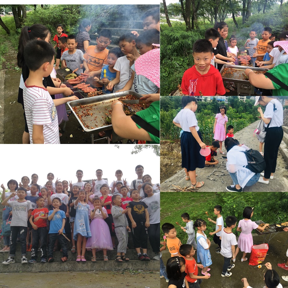 进行户外烧烤活动的那天,队员们和二十名小朋友们在酉河边进行了愉快的户外烧烤活动。孩子们在路上用鹅卵石拼“贝爽”两个字,他们井然有序地排队拿烧烤吃,他们热情地将食物主动分给队员们,他们活泼地参与小游戏,小朋友们的真诚、友善与纯真深深打动了每一位实践队成员,大家一起度过了一段美好的时光�
