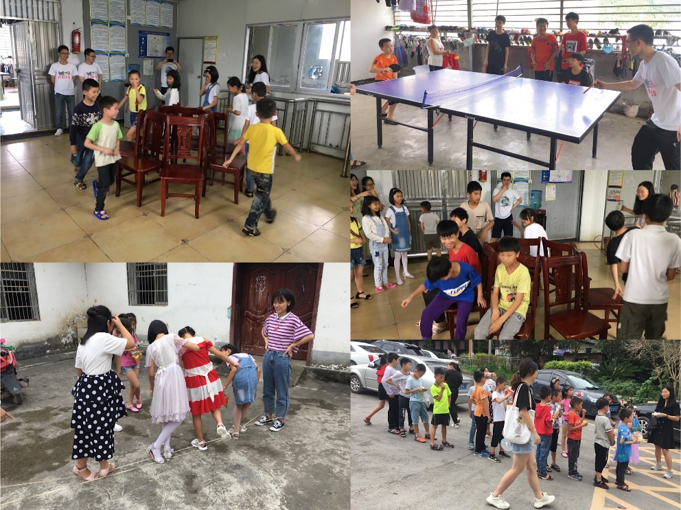 接下来几天,实践队和小朋友们一起开展了课外游戏和户外活动:从充满童真童趣的萝卜蹲、击鼓传花、你画我猜、猜数字、摸瞎子、跳绳等课外游戏,到一起去镇子上观看篮球赛,去河边烧烤等户外活动。丰富多彩的活动不仅使小朋友们收获了快乐也拉进了队员们与小朋友们之间的距离,增进了彼此间的情感�