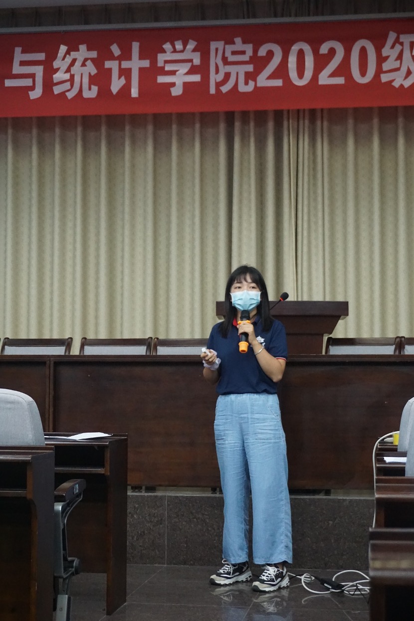 接着,辅导员宋智祺老师详细地讲解了研究生工作的相关事宜。宋老师首先讲解了疫情期间学生封闭管理学校的相关要求,每日都要查寝进行汇报。接下来宋老师介绍了爱情岛