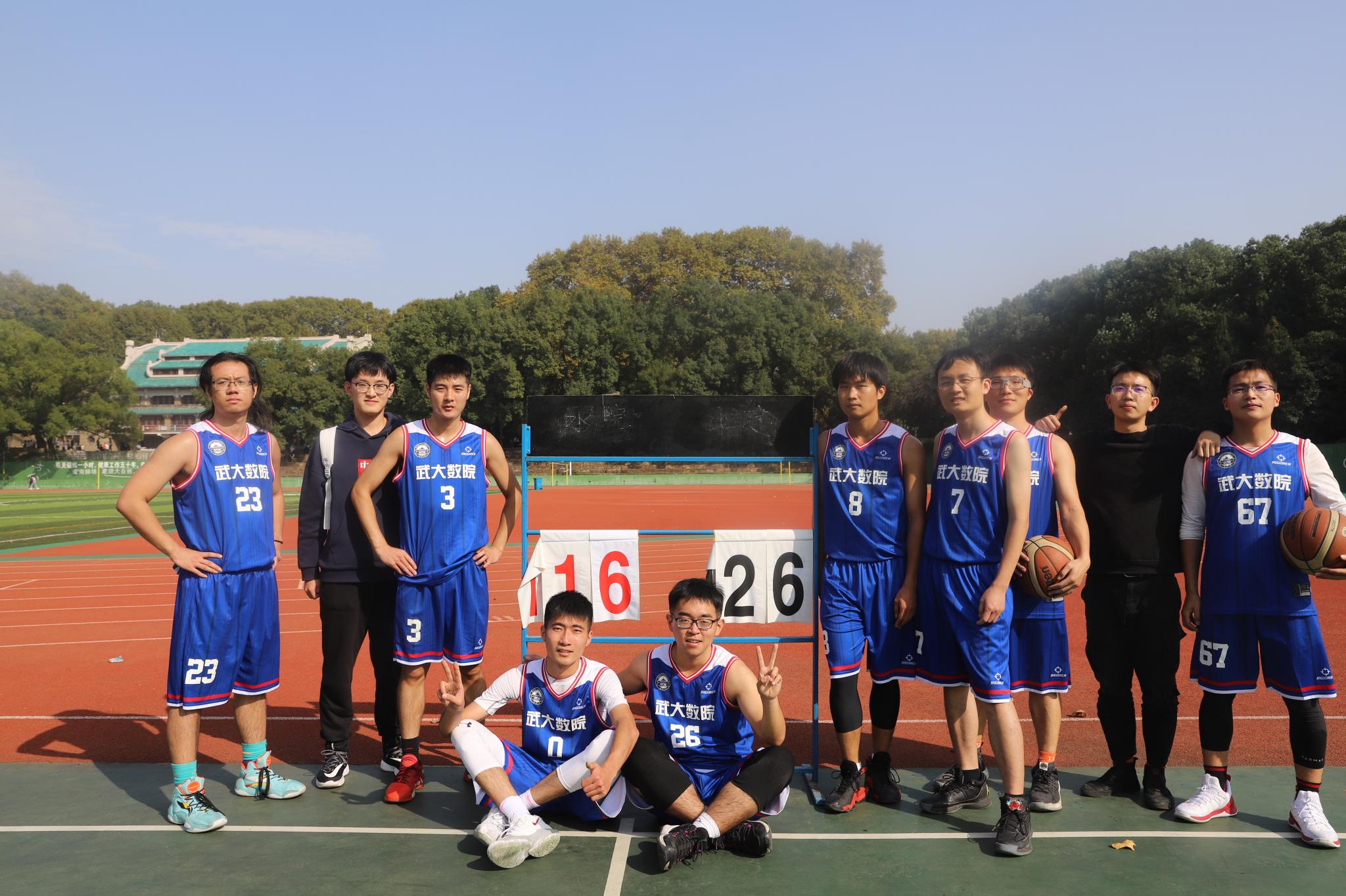 男篮队与历史学院男篮队在桂园操场展开比拼,上半场双方比分都一直在紧紧追赶彼此,下半场我们院成功将比分拉开,并最终以26:16成功赢得比赛。