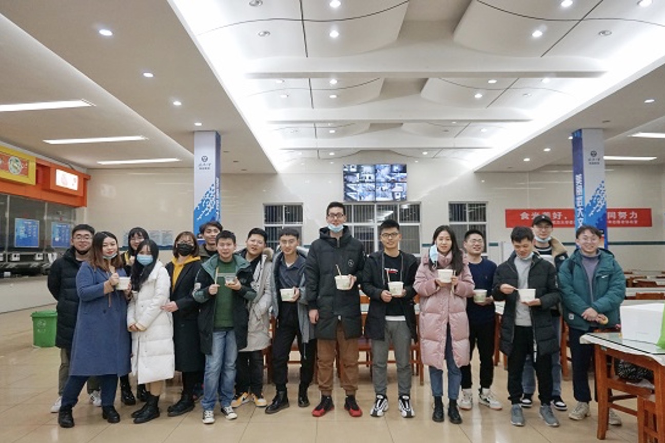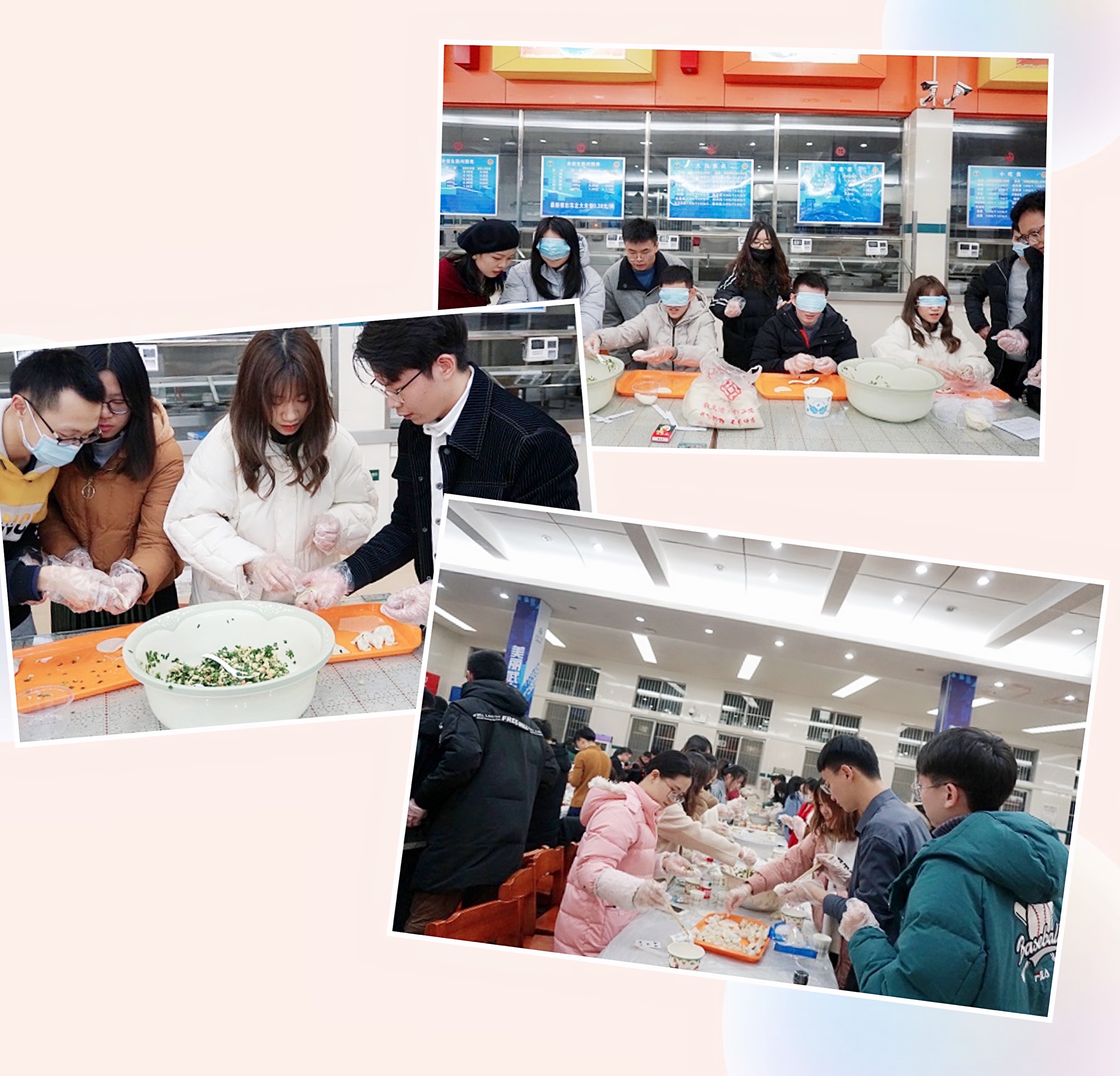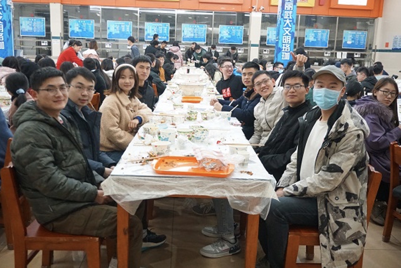 2020�12�21日晚19:00,武汉大学“情暖冬至,快乐冬日”研究生包饺子联谊活动在桂园食堂二楼顺利举办,本次活动由数学与统计学院主办,文学陀水利水电学陀物理学院协办。活动旨在增进同学情谊,丰富研究生同学们的课余生活,扩展大家的视野,增进四院友谊,让同学们在冬至佳节的集体活动中,感受家与节日的温暖�