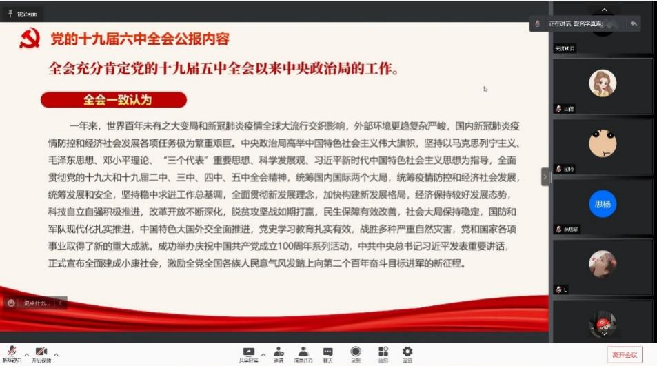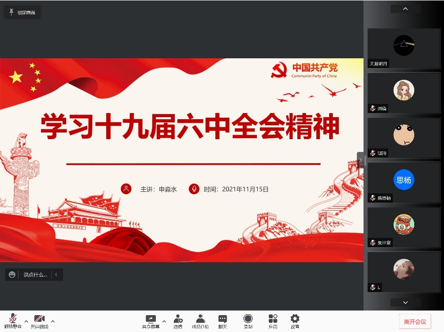 2021级应用数学硕士班团支部开展了一次“学习十九届六中全会精神” 的线上主题团日活动。