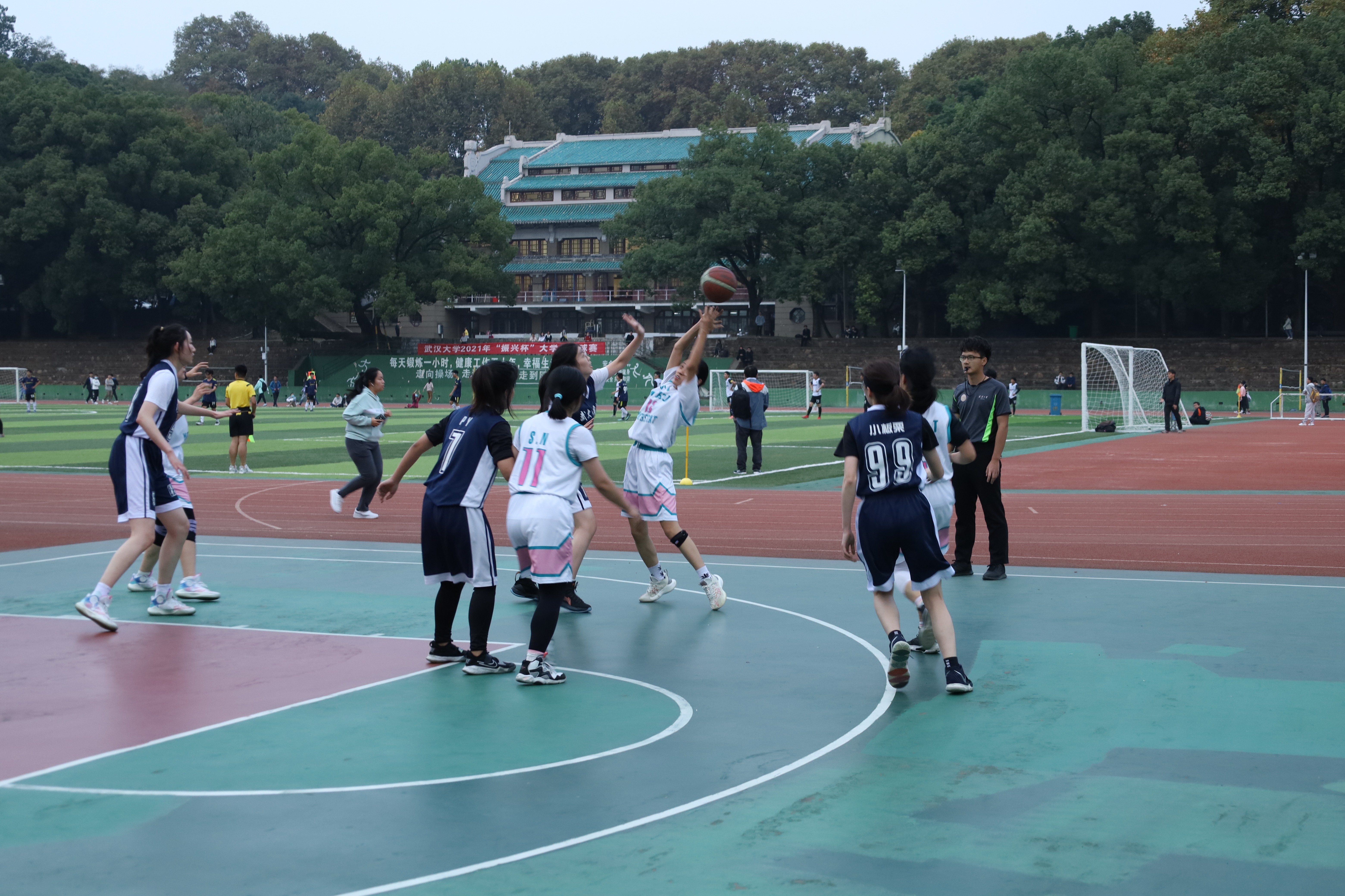 2021年11月1日下午四点半,数院女篮队与法院女篮队于桂园操场5号球场开始比赛。这是继本届篮球赛开赛以来爱情岛