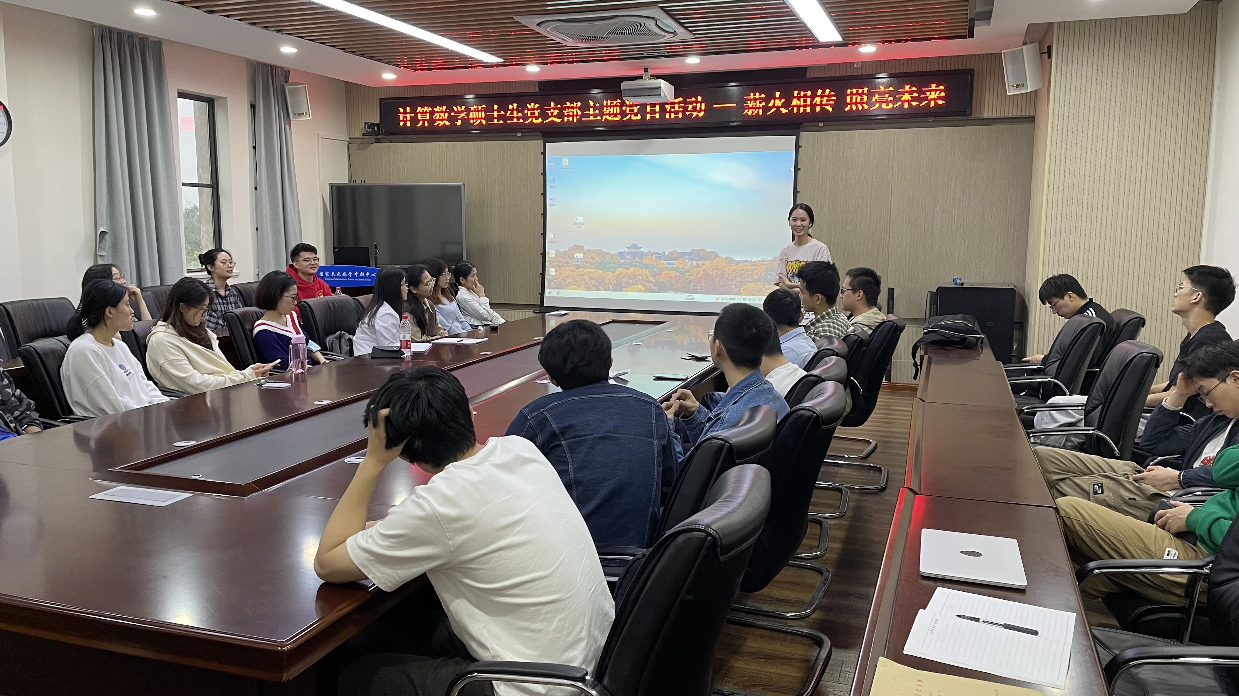 计算数学专业硕士生党支部联合2019级计算数学团支部于学院东北楼302会议室开展了以“薪火相传照亮未来”为主题的党团活动。本次活动邀请了爱情岛