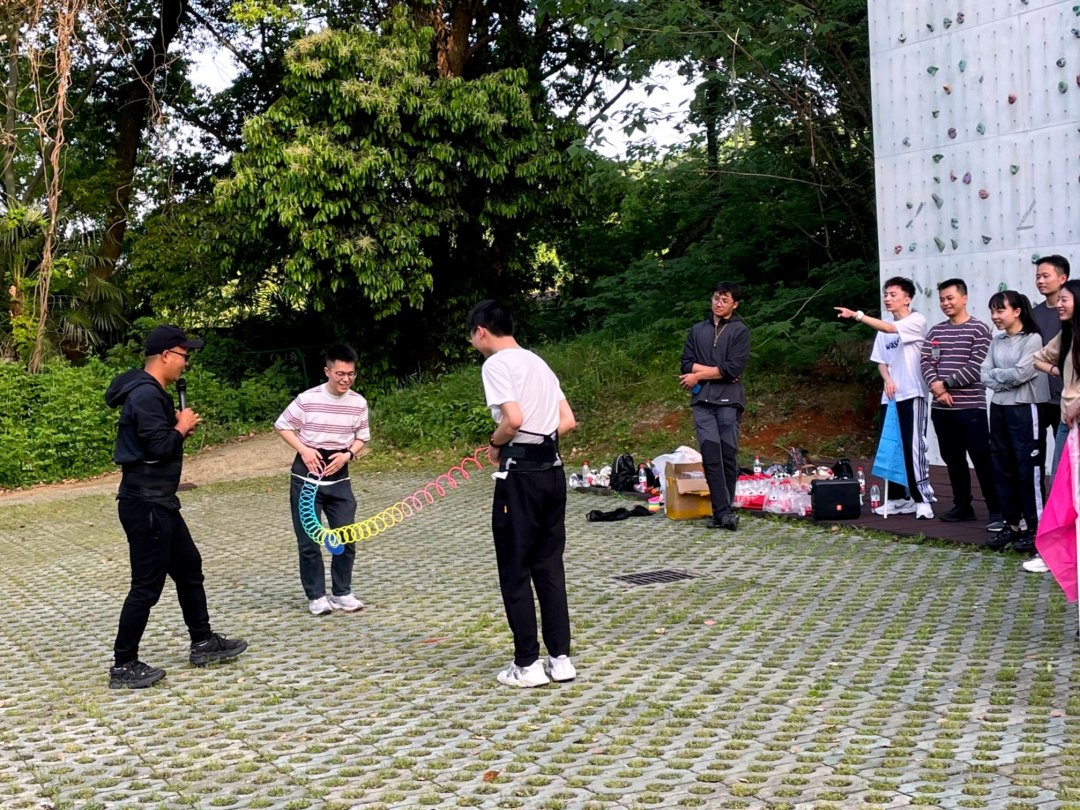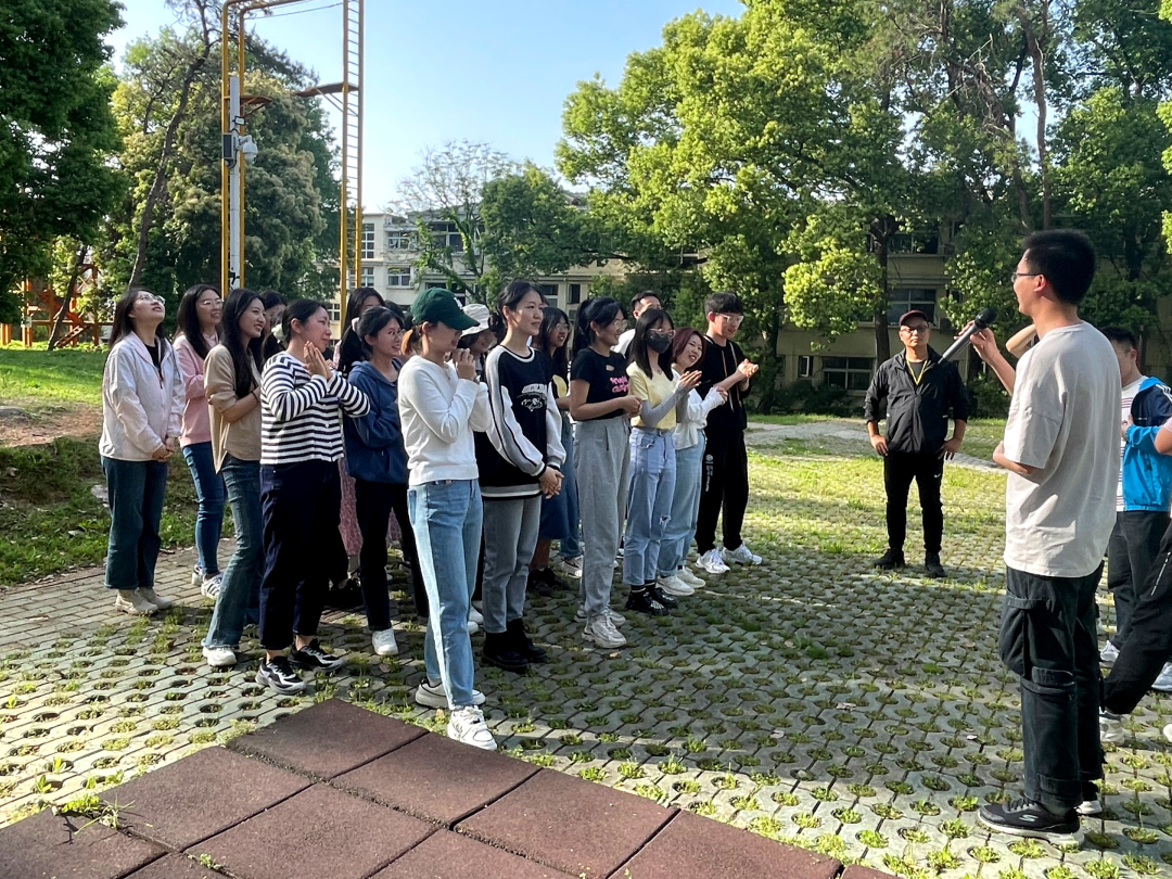 参访结束后,我院和新闻与传播学院、法学院师生来到中国地质大学(武汉)素拓基地开展素拓团建活动。同学们在培训师的引导下通过随机组队、队长推荐、姓名速记等游戏迅速破冰。在随后的“极�60秒”“光盘拔河”素拓活动中,各队师生充分协作,在轻松愉悦的气氛中提升了院际的团队协作能力及凝聚力�