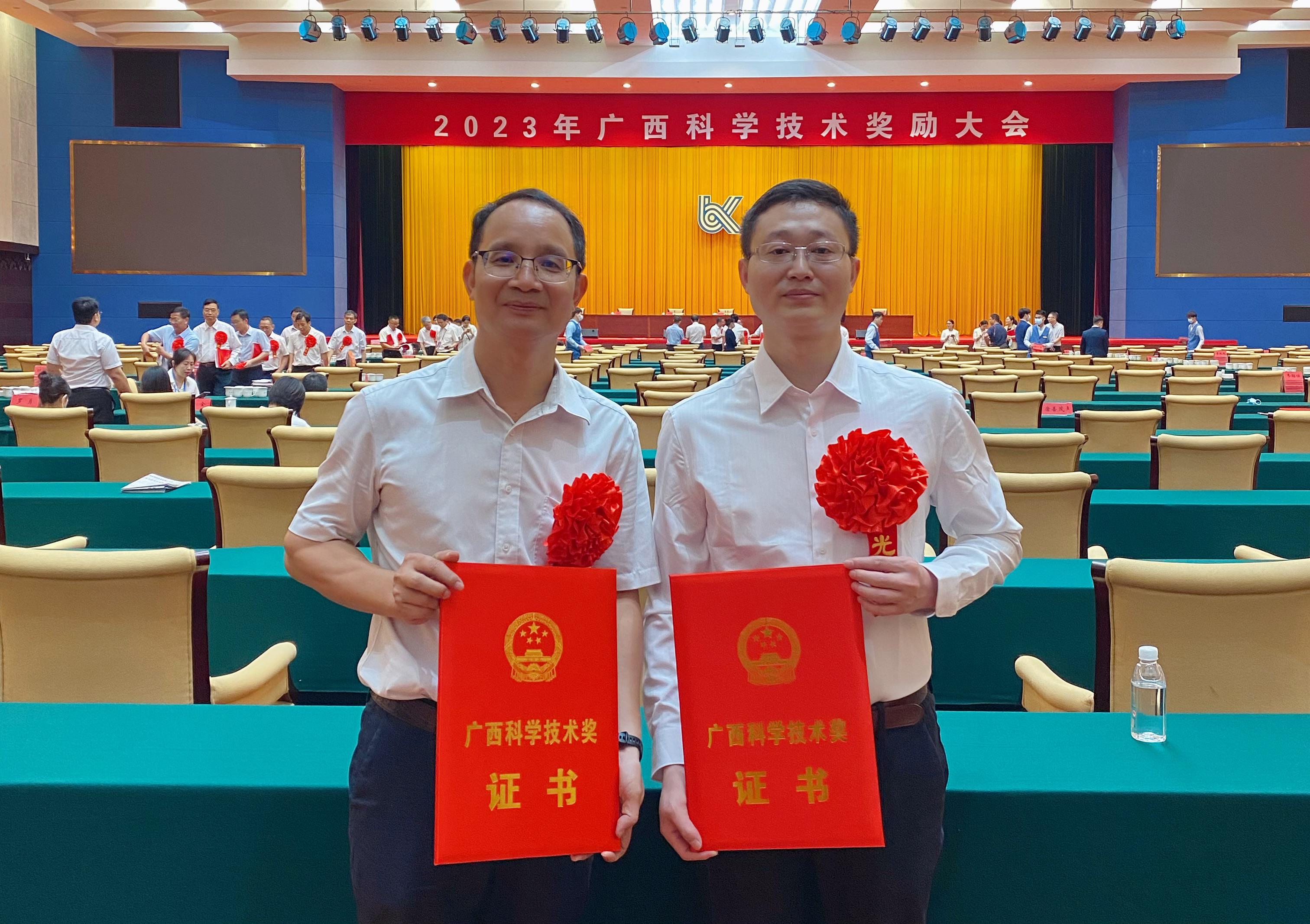 聂双喜教授荣获“青年科技杰出贡献奖”(奖励等级和荣誉效力等同于广西自然科学一等奖),李凯教授主持完成的“糖厂三废减量化及治理关键技术研发与应用”荣获“科学技术进步二等奖”。