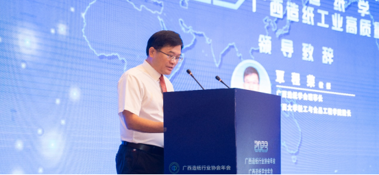 中国造纸学会理事长曹振雷做了题为“浅谈中国(广西)造纸工业转型升级”的报告,曹理事长分析了当前中国造纸行业发展中遇到的产能过剩、纤维原料短缺、能源结构不合理等痛点,指出企业未来一定要坚持绿色低碳发展,曹理事长鼓励企业家们用开放的思想来考虑转型的方向,他结合近期在国内外考察的成果,提出食品包装和生活用品行业,未来将对造纸纤维原料有广阔的需求空间,造纸人要抓住这个转型期。