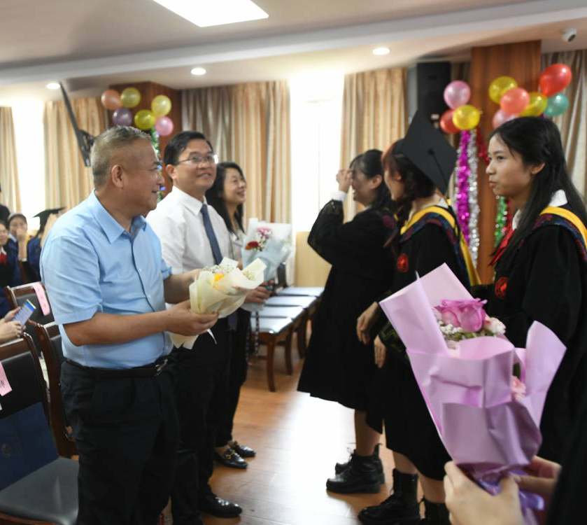 毕业生代表们将一束束鲜花送到老师们手上,感谢亲爱的老师们对他们这几年的辛勤付出,成长离不开老师们的关心关爱和指导,在前行路上,师恩永难忘!