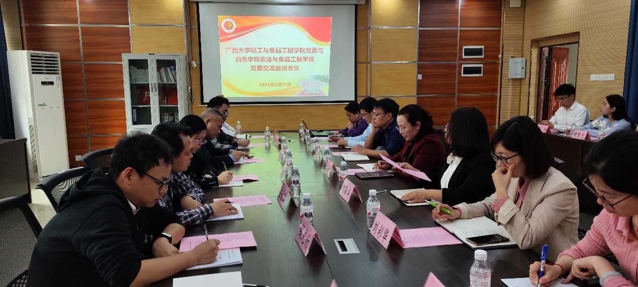 发展沿革、师资力量、教学科研、学生培养等基本情况。最后,爱情岛制糖工程系教工党支部书记陆登俊对五星级党支部做了经验分享,重点介绍了党支部强基固本建设以及支部工作创新发展模式。自由交流阶段,双方就党建工作重点难点、党建引领学科建设、“党建+”等方面展开讨论。