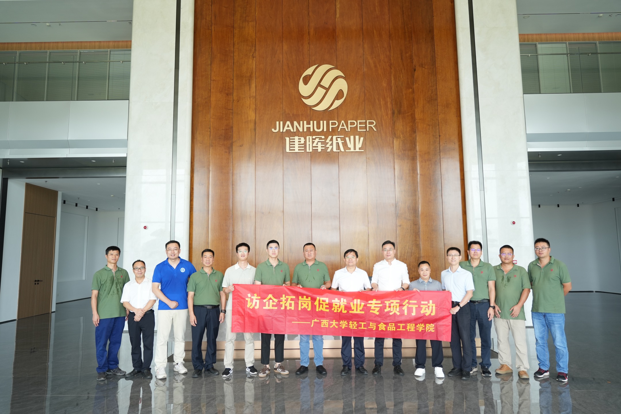 院长覃程荣教授和广西建晖纸业有限公司副总经理冉虎等领导出席活动,并共同为毕业生就业基地、实践教育(实习)基地、产学研合作基地揭牌。覃程荣、冉虎分别致辞,双方围绕校企平台建设、人才引进、产学研合作等方面展开洽谈。