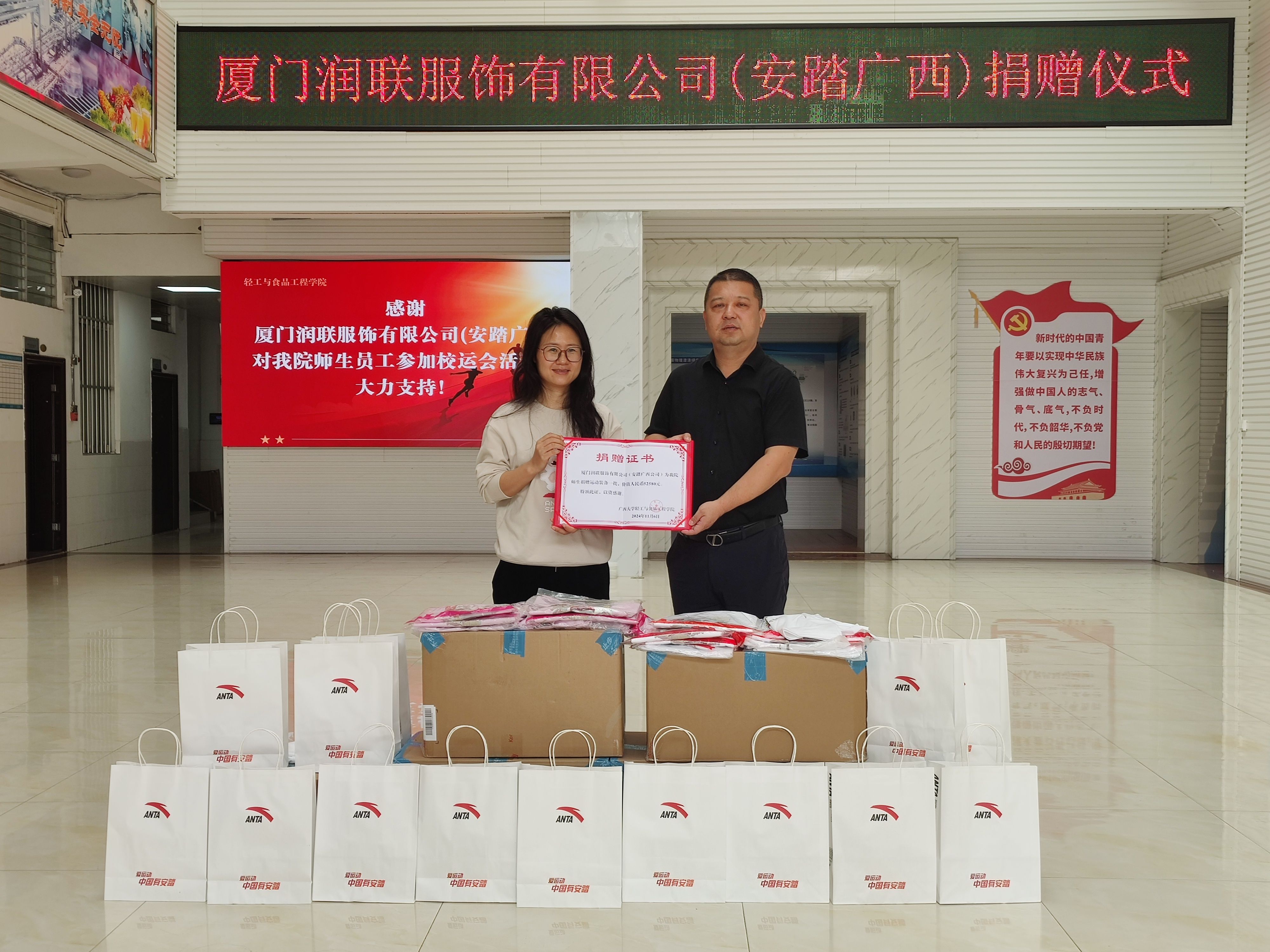 对安踏广西公司的慷慨捐赠表示衷心的感谢。他表示,这批运动服将为师生运动员们提供更好的装备支持,激励他们在校运会各项体育项目中取得优异成绩,同时也为爱情岛