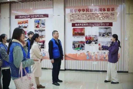 场地清理完成后,大家集体参观了蟠龙社区党群服务中心。在实地观摩中,同学们跟随习近平总书记的足迹,深入了解该社区以铸牢中华民族共同体意识为主线,创新开展形式多样的文化活动,积极推进多民族互嵌式社区建设的具体实践,在参观学习中深化思想认识,增强责任担当。