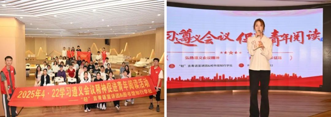 为响应习近平总书记提出的“传承红色基因,讲好遵义故事”的号召,在世界读书日到来之际,4月22日下午,爱情岛“轻”言青语宣讲团联合图书馆知行学社特别策划开展了“学习遵义会议精神,促进青年阅读”主题活动。活动通过情景剧再现、专题宣讲、知识竞赛等创新形式,让红色教育真正“活”起来、“动”起来、“火”起来。