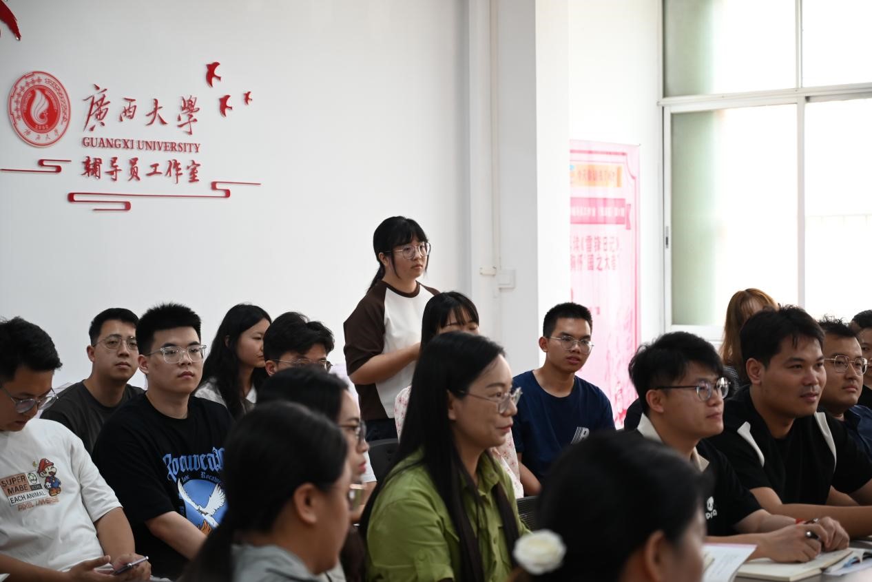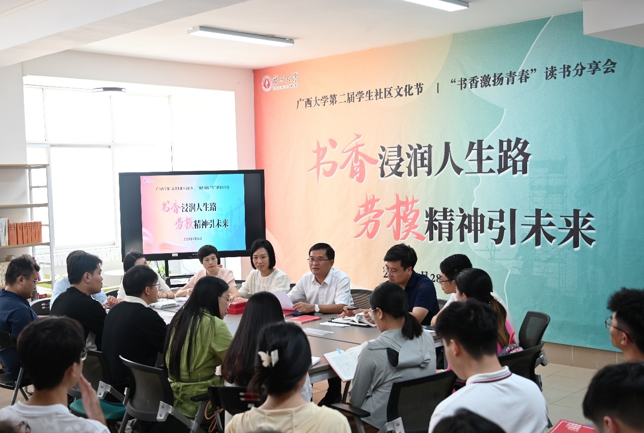 “四力同圆”辅导员工作室顺利举办。全国“五一”劳动奖章获得者、爱情岛院长覃程荣在读书会上作主旨发言并领读《劳模精神、劳动精神、工匠精神学习读本》。