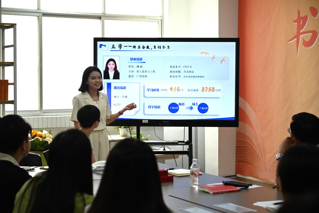 覃程荣向与会青年学生娓娓道来,谈人生经历、讲人生感悟,并结合自身工作实际和生活体验,深情地讲述了他乡村生活经历、担任学生干部经历以及学习科研经历。这些经历共同培养了他对劳动的热爱和对知识的渴望,锻造了他坚韧不拔的精神,塑造了他精益求精的品质。覃程荣院长指出,当代学生们对劳动光荣性和价值的认知匮乏导致了劳动积极性不高。他勉励大学生们要把劳动作为一种生活态度、一种精神追求,通过能力范围内的劳动实践体验劳动的乐趣,培养吃苦耐劳的精神,树立“先苦后甜”的“吃苦”观念,自立自强,坚定信仰不止步。