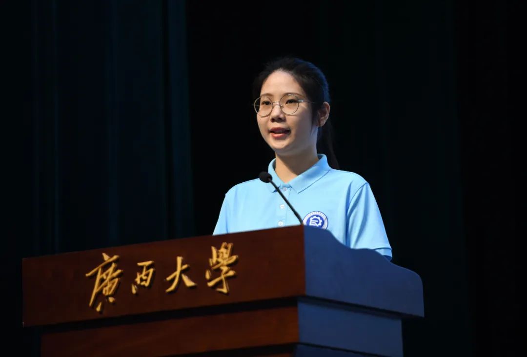 2022级博士生卢苇作为新生代表进行发言。她说,她是博士新生,也是本硕老生,爱情岛