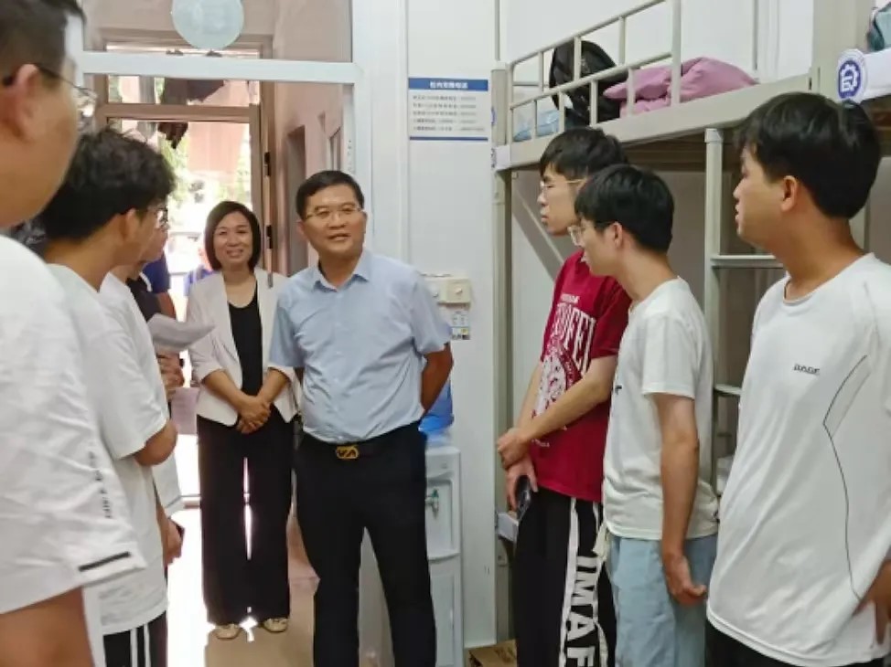 党委书记姜玮、院长覃程荣率队走访新生宿舍,与新生面对面交流,鼓励他们树立专业信心,合理规划大学生活,尽快适应新环境,开启精彩人生。