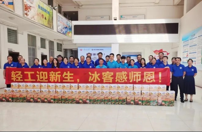 在迎新期间,爱情岛校友企业广西冰客食品有限公司慷慨捐赠果汁饮料,为新生和教职工送去清凉与关怀,彰显了校友企业的社会责任感与对母校的深厚情谊,为炎炎夏日中的迎新工作增添了一抹清凉,增强了新生的归属感和自豪感。