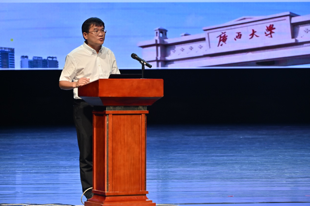 向全体新生表示热烈欢迎和诚挚祝贺,详细介绍办学特色、学科优势与科研成果,勉励同学们珍惜时代赋予的机遇,把握大学宝贵时光,在轻工这片创新沃土上砥砺前行。覃程荣院长指出,大学是人生新的起点,也是个人能力成长与价值塑造的关键阶段。他鼓励同学们尽快完成角色转变,树立远大目标,在科研创新、实践探索与社会服务中勇敢迎接挑战、不断超越自我,用奋斗书写无悔青春,用行动回应时代呼唤。
