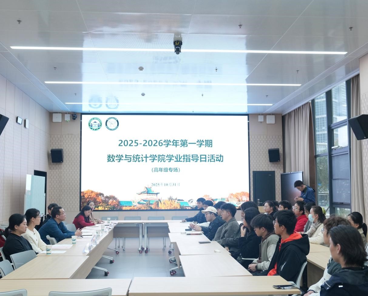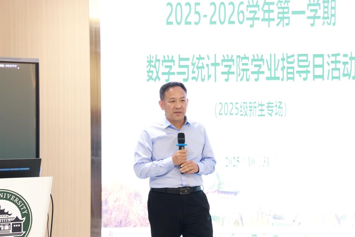On the afternoon of October 31, the School of Mathematics and Statistics held two simultaneous undergraduate academic guidance day events tailored by grade and theme. The freshman session, focusing on university adaptation and academic initiation, took place in the large auditorium of the Lei Jun Science and Technology Building. The upperclassman session, emphasizing development planning and future decisions, was held simultaneously in the B102 auditorium. Attendees included Party Secretary Li Qin, Dean Fan Huijun, Deputy Party Secretary Liu Shanshan, Vice Deans Wang Maofa and Lü Xiliang, faculty representatives, and relevant staff from the Academic Affairs and Student Affairs offices.