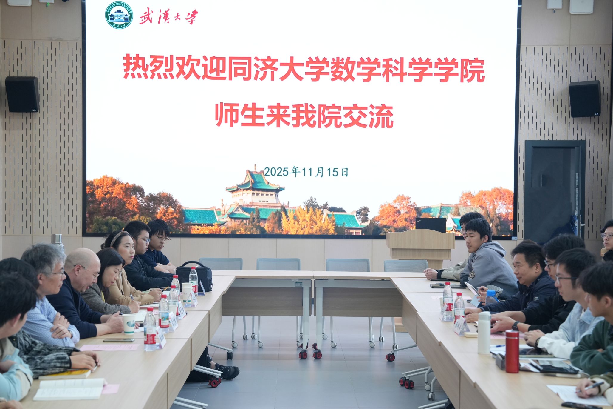 Rang Guanglin extended a warm welcome on behalf of the institute to the teachers and students from Tongji University. He briefly introduced Wuhan University's long-standing history, profound mathematical heritage, and the unique charm of Luojia Mountain in autumn. He emphasized that both institutes shoulder the responsibility of cultivating top-notch talent in fundamental disciplines for the country, and this exchange is of great significance for serving the strategic development needs of the country and promoting discipline construction and talent training.