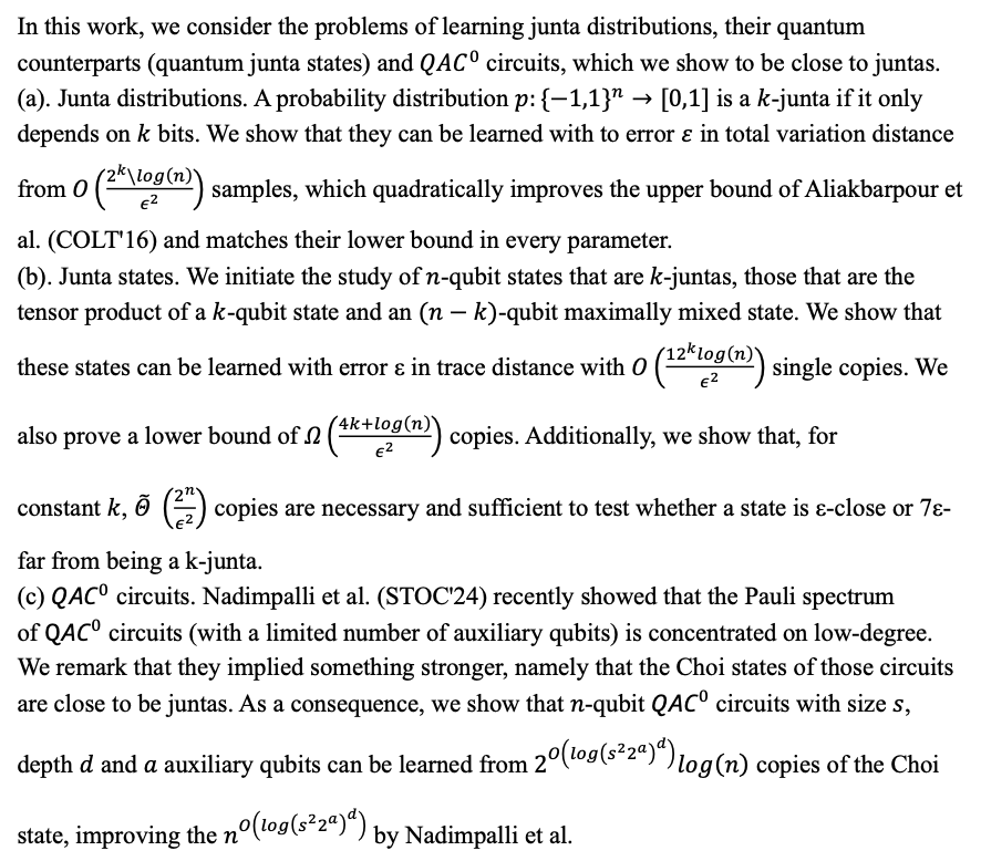Speaker Biography: Jinge Bao is currently a Senior Researcher in the School of Informatics, University of Edinburgh under the host of Elham Kashefi. Previously, He was a research fellow at CQT, NUS, working with Patrick Rebentrost. And at the same institution, he obtained his PhD degree in quantum computation and information from Centre for Quantum Technologies, National University of Singapore, under the supervision of Miklos Santha. His current research interests are quantum property testing, quantum learning theory and quantum complexity theory.