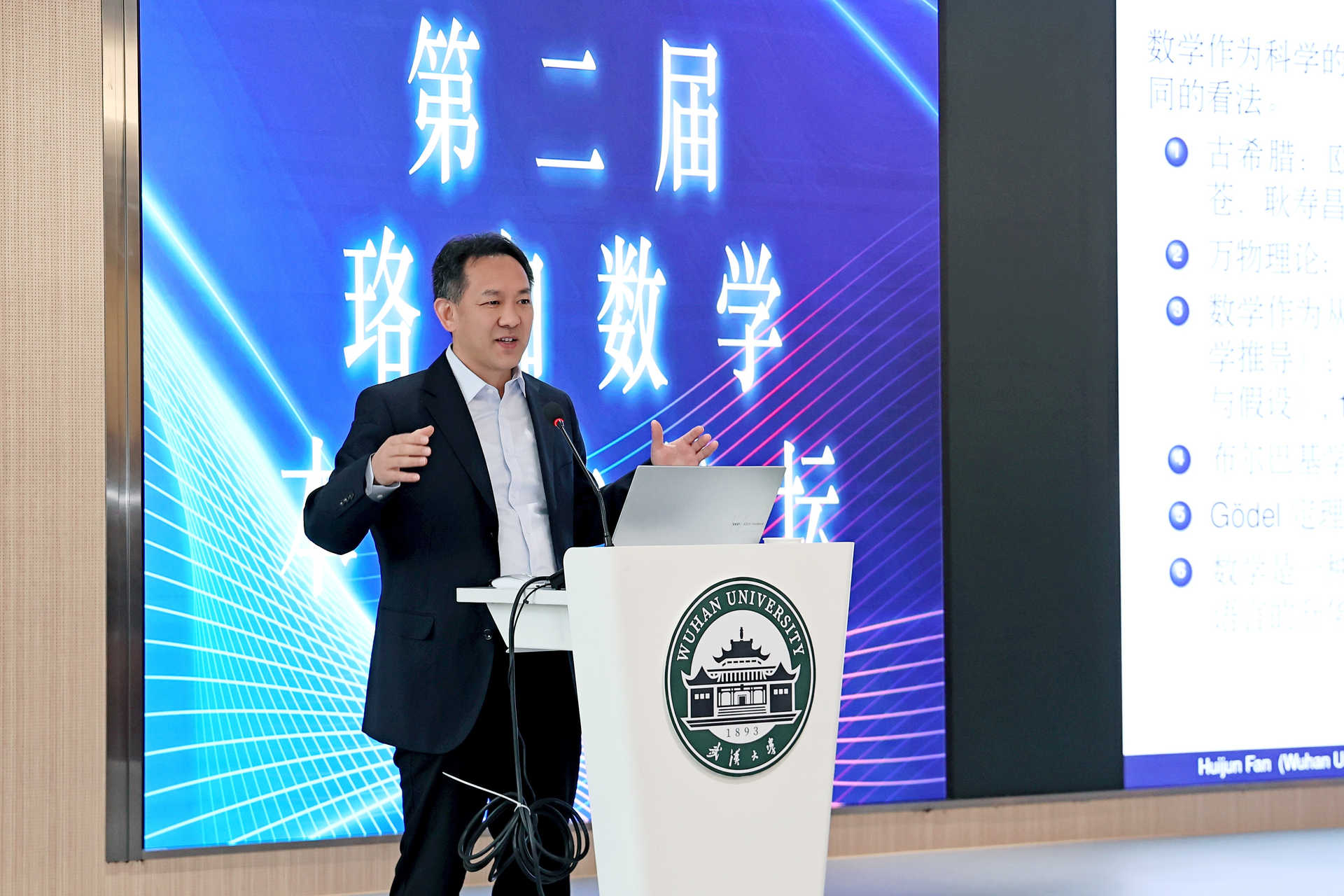 Li Qin delivered the opening address. In his remarks, he extended a warm welcome to faculty and students from universities across the nation. Beginning with the origins of International Mathematics Day, he introduced the long-established School of Mathematics and Statistics at Wuhan University, highlighting its academic traditions and cultural heritage. He also reviewed the outstanding achievements of the inaugural Luojia Undergraduate Mathematics Forum. Finally, Li Qin declared the official opening of this year's Mathematics Culture Festival and the Second Undergraduate Forum. He expressed his hope that all participants would gain new insights and growth from this academic feast of collaboration between teachers and students, mutual learning, and intellectual exchange.